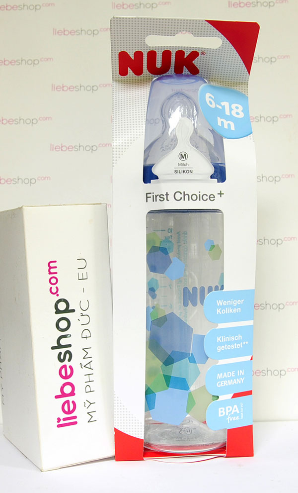 Bình sữa cổ rộng NUK First Choice nhựa PP núm Silicone 300 ml – Hàng xách tay Đức