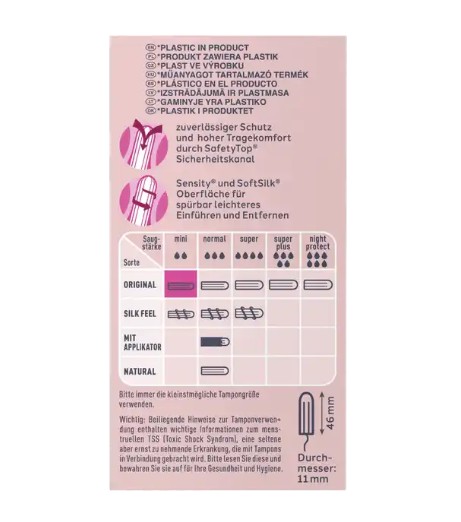 - Size Super Plus: siêu thấm, kích cỡ như ngón tay cái. Dùng cho người có lượng kinh nguyệt ra nhiều; dùng trong những ngày đầu chu kì; dùng ban đêm.