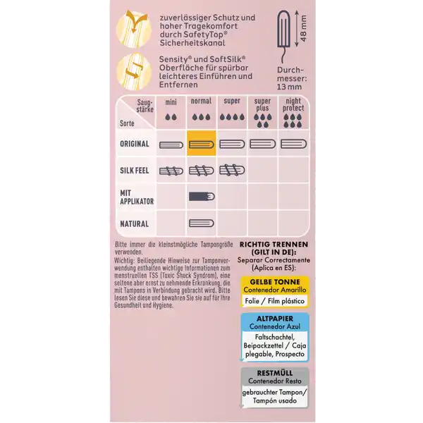 Thành phần: Lõi tampon bao gồm 100% viscose. Sợi rút được làm bằng 100% cotton.