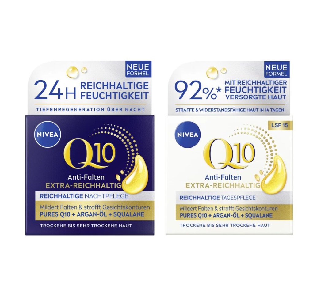 Bộ kem dưỡng da Nivea Q10 Anti-Falten Extra Reichhaltige ngày đêm cho da rất khô, 2x50ml