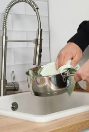- Làm sạch: Hòa tan vết bẩn dầu mỡ, cặn bẩn trên nồi, xoong, chảo, hút mùi và các vật dụng nhà bếp khác.