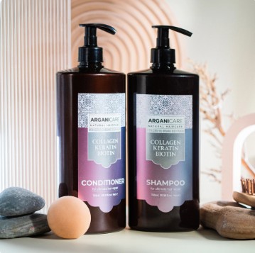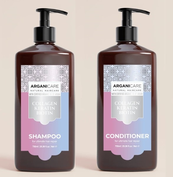 Cặp gội xả ARGANICARE Collagen, Keratine & Biotine phục hồi tóc hư tổn, 2x750ml