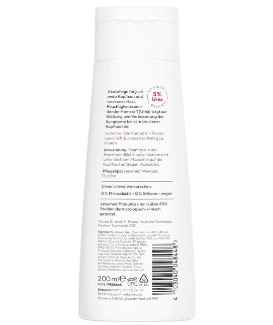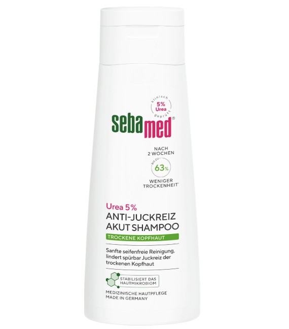 Dầu gội trị ngứa sebamed Anti-Juckreiz Akut Shampoo được đặc chế để đáp ứng nhu cầu của da đầu rất khô và ngứa. Công thức không chứa xà phòng với polidocanol giúp giảm ngứa và mang lại cảm giác dễ chịu cho da. Urea dưỡng ẩm giúp làm mịn da và giảm rõ rệt tình trạng khô da. Lý tưởng để sử dụng ngay lập tức cho da đầu nhạy cảm và tóc khô. Không chứa thuốc nhuộm, không chứa cồn, không chứa silicon.
