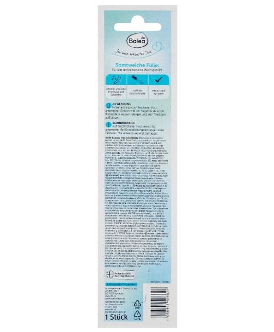 - Sử dụng dụng cụ chà gót chân Balea Hornhautraspel trên da khô, chà xát nhẹ nhàng để loại bỏ lớp da chết, da cứng, vết chai sần.