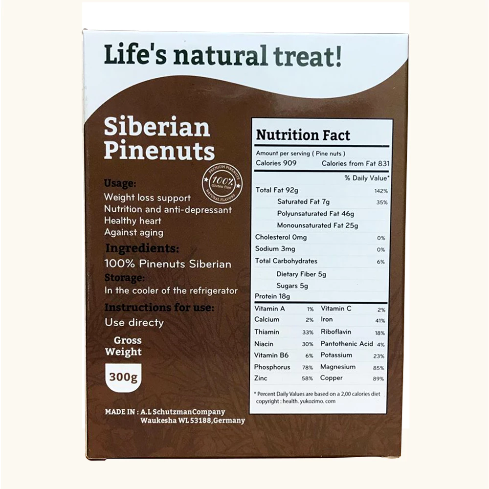 Hạt thông Siberian Pinenuts Savana Orchards 100% tự nhiên và nguyên chất, được coi là vua của các siêu thực phẩm, giữ kỉ lục tuyệt đối về hàm lượng vitamin. Có giá trị dinh dưỡng rất cao (vitamin B1, B2, vitamin PP, axit folic, magie, photpho, vitamin E, sắt, kali,…). Vị béo ngậy và ngọt nhẹ. Loại hạt này luôn là một món ngon và là nguyên liệu được săn đón trên bàn ăn của giới quý tộc và vua chúa. Được sử dụng trong cả các món chính và món tráng miệng, dùng làm món ăn vặt, tráng miệng, salat…