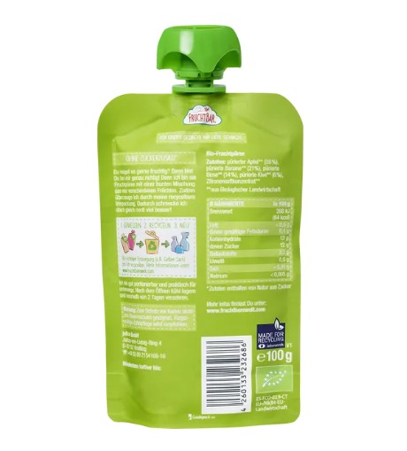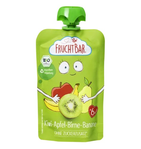 Hoa quả nghiền hữu cơ Fruchtbar Bio Fruchtpüree Kiwi, Apfel, Birne, Banane – kiwi táo lê chuối, 100g