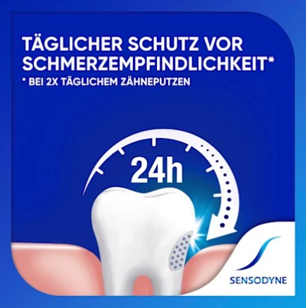 Thành phần: Aqua, Sorbitol, Hydrated Silica, Glycerin, Potassium Nitrate, Sodium Lauryl Sulfate, Aroma, Xanthan Gum, Alumina, Sodium Saccharin, Sodium Fluoride, Sodium Hydroxide. Enthält Natriumfluorid (1426 ppm Fluorid).