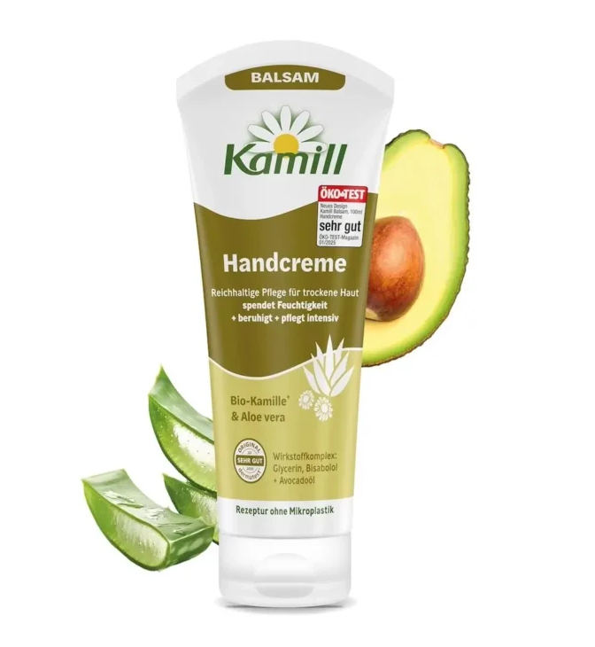Kem dưỡng tay Kamill Hand & Nagelcreme balsam là sản phẩm dưỡng ẩm chuyên dụng rất nổi tiếng của Đức, với chiết xuất từ hoa cúc hữu cơ tự nhiên, bisabolol, lô hội và dầu bơ, giúp làm dịu da và hỗ trợ tái sinh tự nhiên của da, cung cấp độ ẩm chuyên sâu cho da khô nứt nẻ, dưỡng tay mềm mịn và móng tay bóng khỏe.