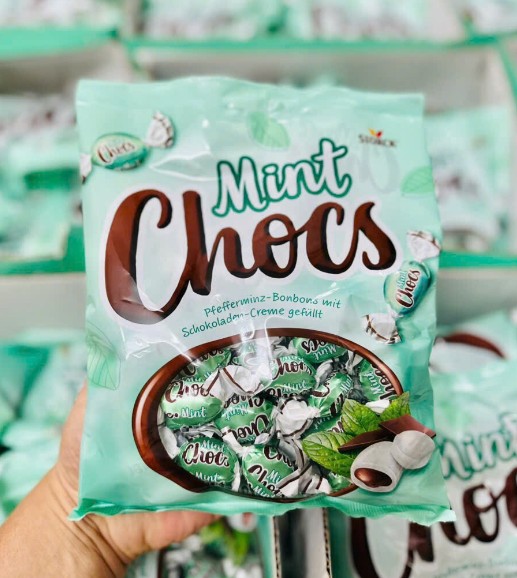 Kẹo bạc hà nhân socola Mint Chocs từ thương hiệu STORCK nổi tiếng của Đức, hương vị bạc hà the mát hòa quyện cùng nhân socola ngọt ngào. Kẹo có hương vị thơm ngon, hấp dẫn. Là món ăn vặt được cả trẻ nhỏ và người lớn yêu thích. Cũng thích hợp được thêm vào các giỏ quà tặng, hay bày biện trong dịp lễ Tết.