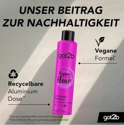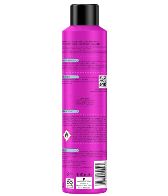 Keo xịt tóc (hay còn gọi là gôm xịt tóc, xịt gôm) Got2b Happy Hour Haarspray là sản phẩm của Schwarzkopf – thương hiệu hàng đầu tại Đức về các sản phẩm dành cho tóc. Giúp giữ nếp, cố định kiểu tóc đã tạo hình lâu dài suốt cả ngày. Đồng thời bảo vệ tóc không bị khô. Hương thơm nhẹ nhàng tươi mát. Không có amoniac, không có silicon, không có sunfat, thuần chay.