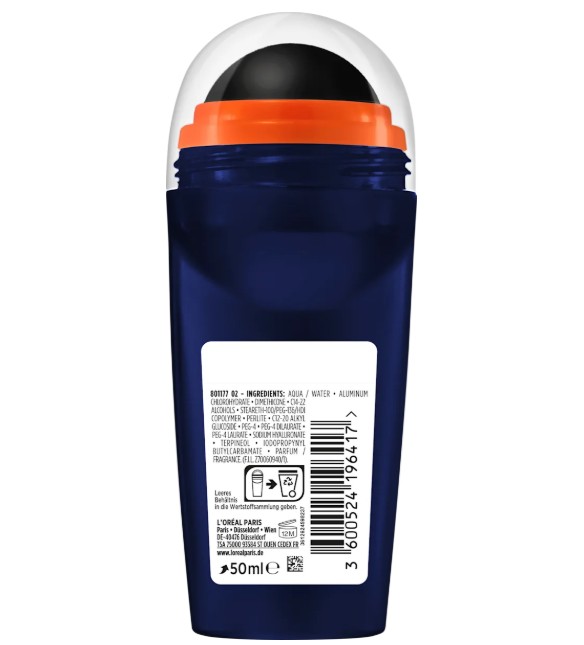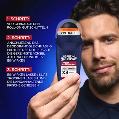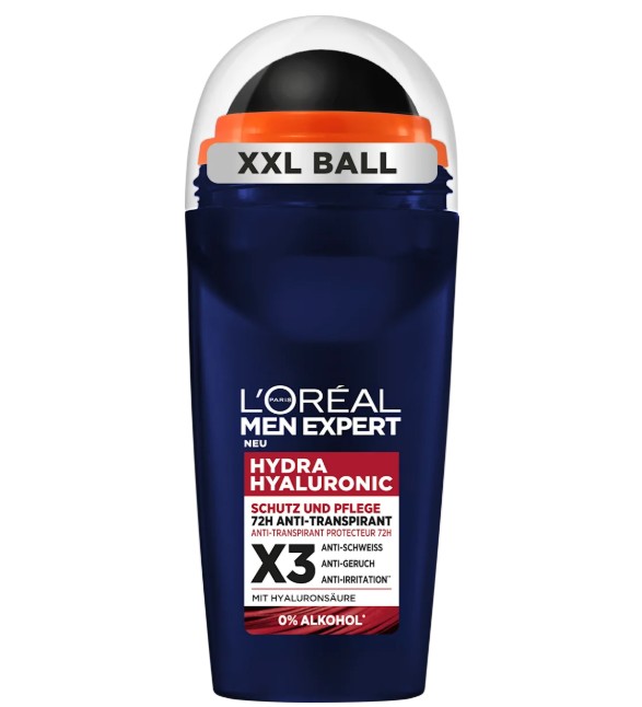 Lăn khử mùi Loreal Men Expert Hydra Hyaluronic được làm giàu với axit hyaluronic, khử mùi chăm sóc da đồng thời bảo vệ da khỏi kích ứng. Sản phẩm mang lại hiệu quả khử mùi lên đến 72 giờ và bảo vệ chống mồ hôi lên đến 48 giờ với nồng độ cồn 0%. Công thức nuôi dưỡng đặc biệt dịu nhẹ và mang lại cảm giác thoải mái cho da. Sử dụng nhanh chóng và dễ dàng với con lăn bóng XXL. Mùi hương tươi mát, không chứa cồn. Cung cấp sự bảo vệ lên đến 72h và cảm giác tươi mát ngay lập tức.