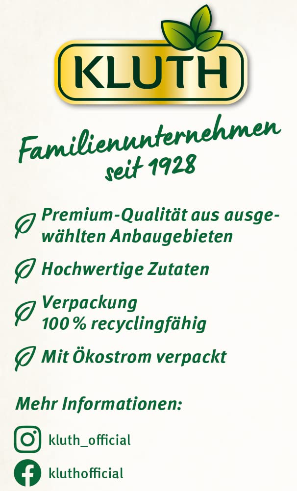 KLUTH là thương hiệu nổi tiếng của Đức có lịch sử từ năm 1928, cung cấp các sản phẩm chất lượng cao cho chế độ ăn uống cân bằng và lành mạnh. Sản phẩm của KLUTH bao gồm các loại hạt, đồ ăn nhẹ, trái cây sấy khô, nguyên liệu và sản phẩm hữu cơ, luôn đảm bảo chất lượng tốt nhất.