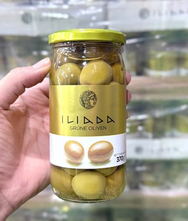 Oliu xanh Iliada Grüne Oliven từ thương hiệu ILIADA nổi tiếng của Hi Lạp, được nhập khẩu và bán tại Đức. Là sản phẩm chất lượng cao, làm từ trái oliu xanh Hi Lạp vừa được thu hoạch, lên men giữ màu sắc tươi ngon và tất cả các chất dinh dưỡng trong trái oliu. Với màu xanh tươi sáng, thịt quả chắc, thơm mùi cỏ đặc trưng và vị thanh mát, có độ giòn tự nhiên. Không chứa chất phụ gia và chất bảo quản. Thường được sử dụng ăn trực tiếp như món ăn nhẹ, khai vị. Hoặc dùng chế biến các món ăn khác như pizza, salad hay các món ăn khác.