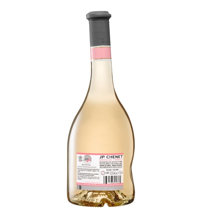 Rượu vang JP. Chenet Grenache Cinsault là loại vang rose (vang hồng) tươi mát và đậm hương trái cây, được làm từ sự pha trộn khéo léo giữa hai giống nho Grenache và Cinsault, biểu tượng của vùng Languedoc-Roussillon đầy nắng. Hương thơm của trái cây chín đỏ và dâu tây, thoang thoảng vị cay êm dịu, độ chua nhẹ tươi mát, mọng nước. Rất tuyệt vời khi dùng khai vị. Nó cũng rất hợp với các món thịt nướng và quay vào bất kỳ thời điểm nào trong năm.
