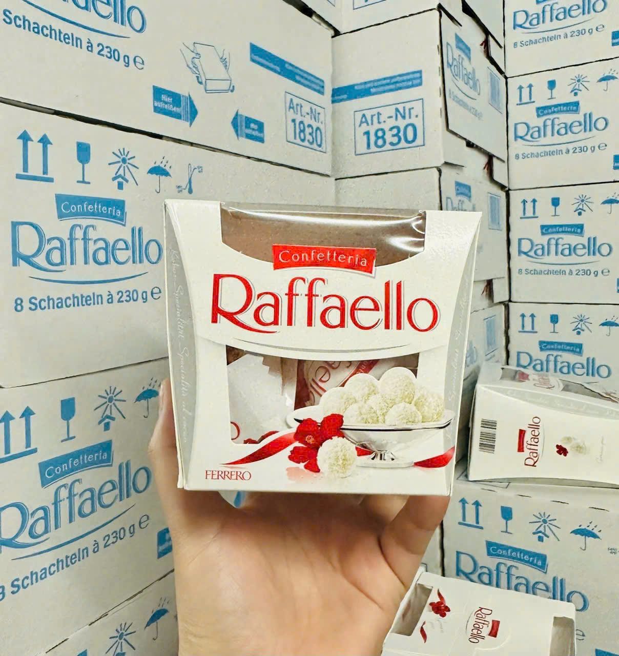 Raffaello Confetteria là thương hiệu socola cao cấp nổi tiếng toàn cầu của Ý, thuộc tập đoàn Ferrero. Các sản phẩm Raffaello đều là những trải nghiệm độc đáo, kết hợp cấu trúc đa dạng không thể bắt chước với các thành phần đặc trưng của chúng tôi: vụn dừa thơm ngát và hạnh nhân giòn tan. Raffaello là hương vị biểu tượng cho những khoảnh khắc thư giãn, tận hưởng niềm vui thuần khiết, được yêu thích trên toàn thế giới..