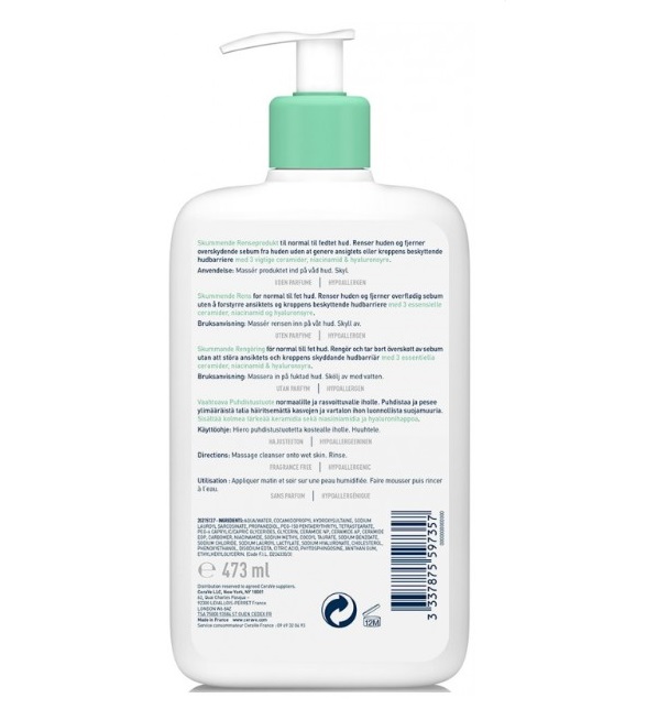 Sữa rửa mặt CeraVe Foaming Cleanser được phát triển phù hợp cho da thường và da dầu, dạng gel tạo bọt giúp loại bỏ bụi bẩn và bã nhờn dư thừa, làm sạch sâu mà dịu nhẹ với da, cấp ẩm và củng cố hàng rào bảo vệ của da, giảm tiết dầu. Với công thức chứa 3 loại ceramide thiết yếu cùng axit hyaluronic giúp dưỡng ẩm sâu, hỗ trợ trẻ hóa và duy trì hàng rào bảo vệ tự nhiên, giữ ẩm cho da suốt nhiều giờ, ngăn ngừa vi khuẩn và mụn. Không có nước hoa. Không gây dị ứng.