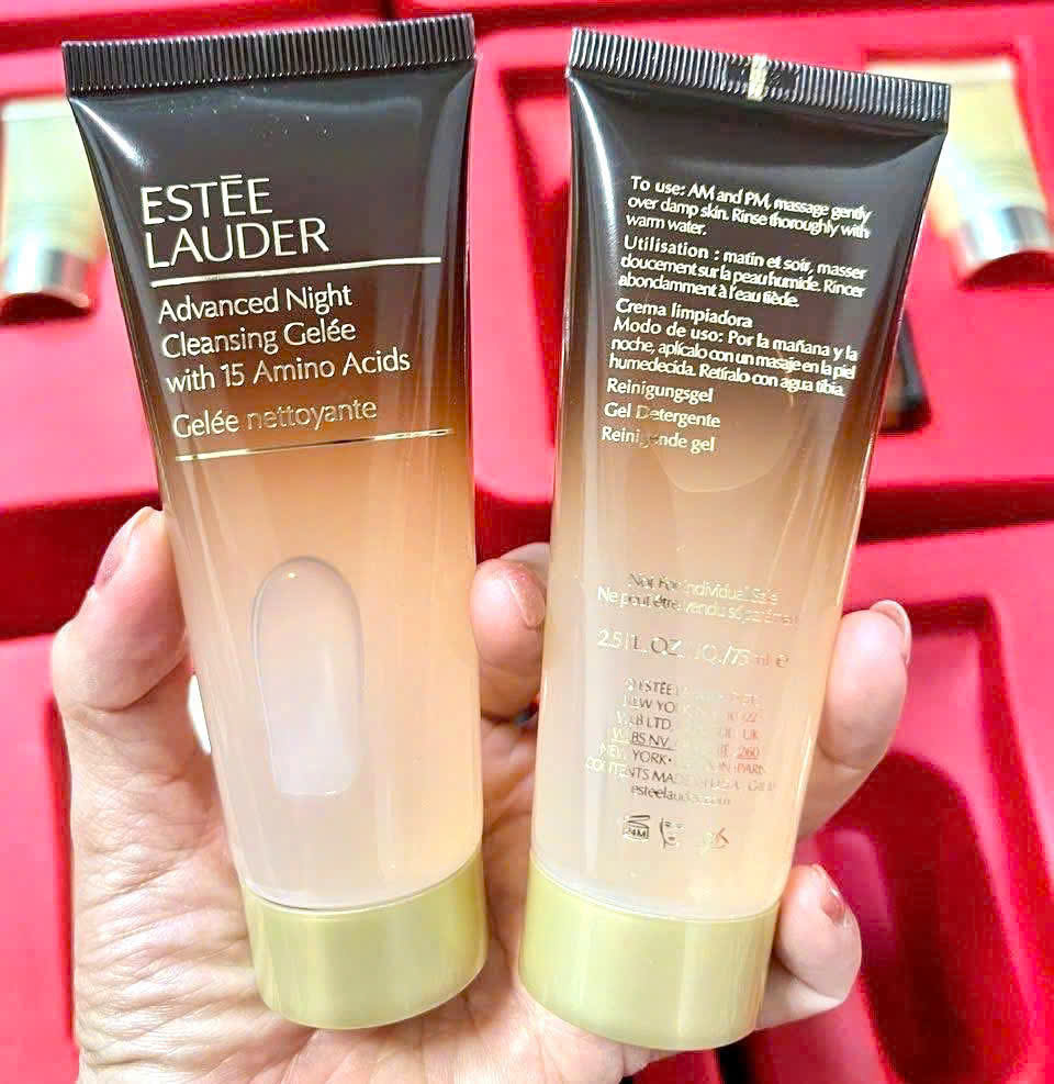 Sữa rửa mặt Estee Lauder Advanced Night Cleansing Gelée với công thức hiệu quả cao bao gồm 15 loại axit amin tự nhiên có trong các lớp bảo vệ của da, làm sạch sâu mà dịu nhẹ, cân bằng và hỗ trợ hàng rào bảo vệ da, làm sáng mịn da. Làm sạch lớp trang điểm (với cả lớp trang điểm lâu trôi) và tạp chất trên bề mặt da mà không làm mất đi hoặc phá vỡ hàng rào bảo vệ độ ẩm hay lớp màng axit. Công thức gel tạo bọt tươi mát, chuyển thành bọt mịn, mềm mại, nhẹ nhàng làm sạch da bạn. Mang lại cảm giác mềm mại, dễ chịu và cân bằng cho làn da – sẵn sàng cho các bước chăm sóc da tiếp theo.
