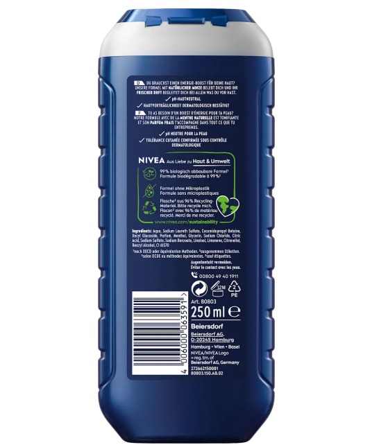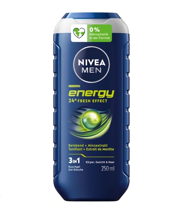 Tắm gội nam NIVEA MEN Pflegedusche Energy với công thức chăm sóc đặc biệt và chiết xuất bạc hà cung cấp năng lượng tươi mới hồi sinh và duy trì cho da và tóc, hương thơm tươi mát sảng khoái. Cho cảm giác tươi mát suốt 24 giờ.