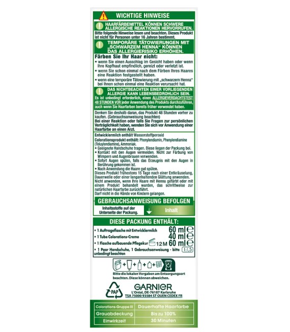Mỗi bộ thuốc nhuộm tóc Garnier Nutrisse chứa: