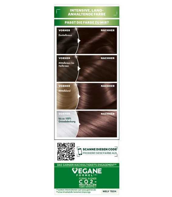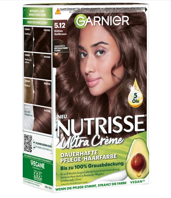 Thuốc nhuộm tóc Garnier Nutrisse 5.12 Kühles Hellbraun – màu nâu nhạt, 1 hộp