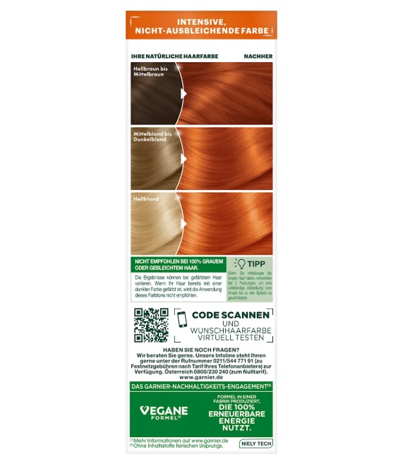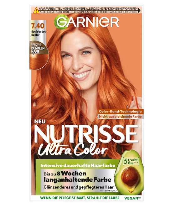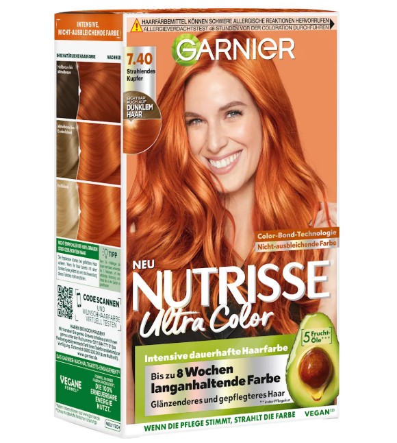 Thuốc nhuộm tóc Garnier Nutrisse 7.40 Strahlendes Kupfer – màu đồng sáng bóng, 1 hộp