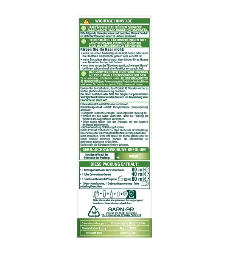 Mỗi bộ thuốc nhuộm tóc Garnier Nutrisse chứa:
