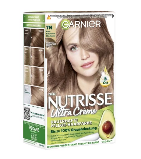 Thuốc nhuộm tóc Garnier Nutrisse 7N Nude Natürliches Mittelblond – màu vàng nude tự nhiên, 1 hộp
