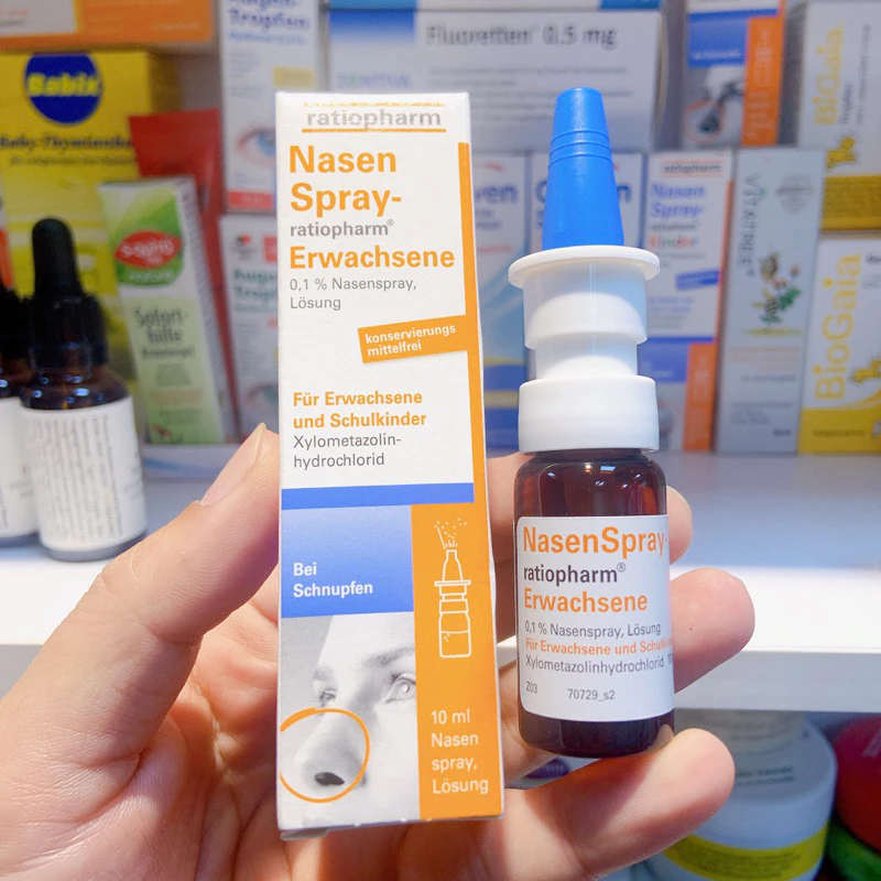 Thuốc xịt mũi Nasenspray-ratiopharm Erwachsener với thành phần hoạt chất xylometazoline hydrochloride giúp làm giảm sưng niêm mạc mũi, giảm nghẹt mũi, làm thông mũi nhanh chóng và nhẹ nhàng trong trường hợp cảm lạnh, sổ mũi từng cơn (viêm mũi vận mạch) và viêm mũi dị ứng, tạo điều kiện cho việc dẫn lưu dịch tiết trong trường hợp viêm xoang và nhiễm trùng tai giữa (viêm vòi nhĩ) liên quan đến cảm lạnh. Giúp thở dễ dàng và ngủ ngon hơn. Sản xuất tại Đức, không chứa chất bảo quản.