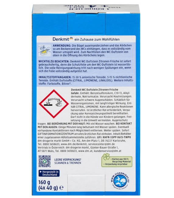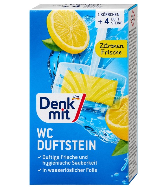 Viên thả bồn cầu Denkmit WC Duftstein Zitronen-Frische hương chanh, 4 viên