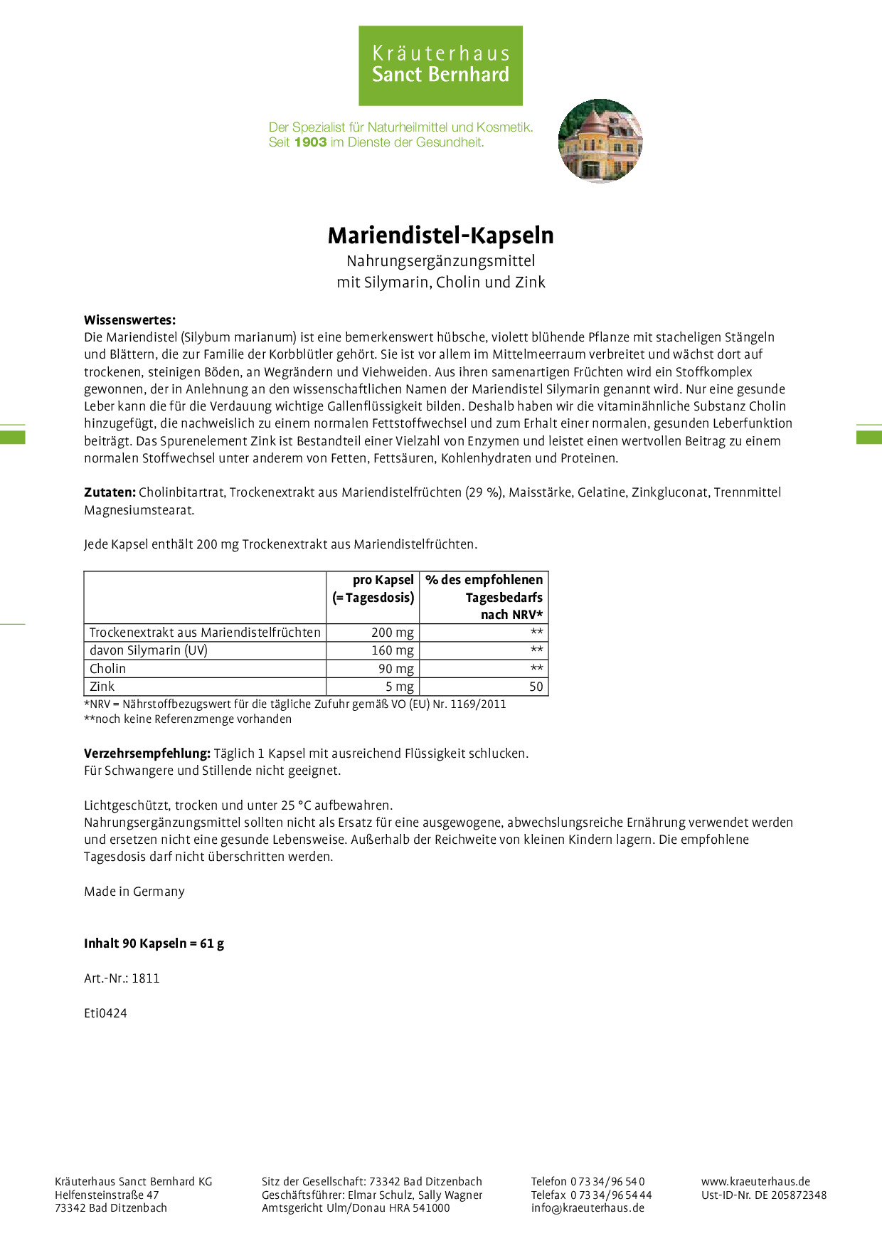 Viên uống bổ gan Sanct Bernhard Mariendistel Kapseln, 90 viên