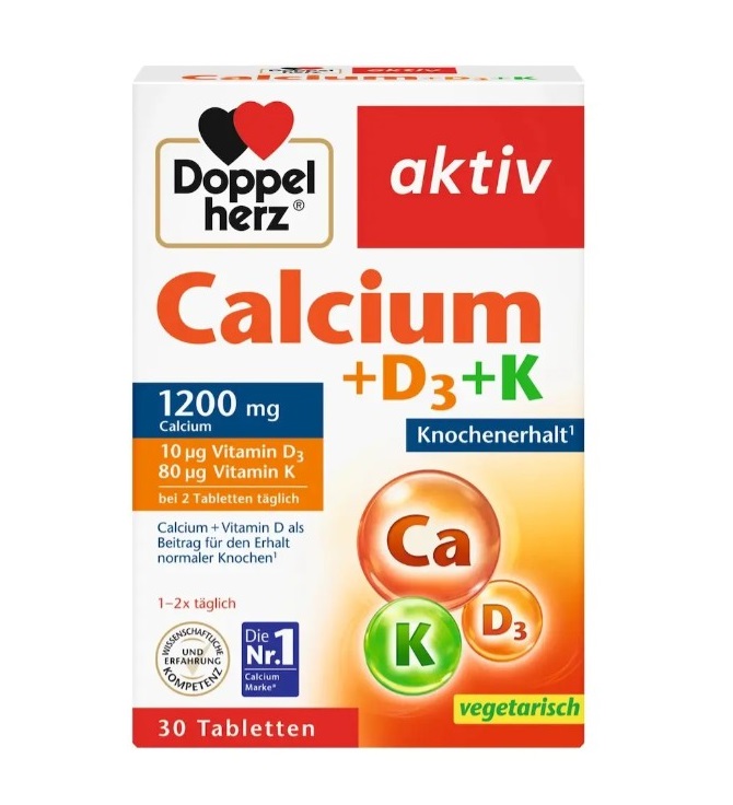 Viên uống bổ sung canxi Doppelherz Calcium + Vitamin D3 1200mg giúp bổ sung canxi và vitamin D3, cho hệ cơ và xương khớp khỏe mạnh. Sản phẩm kết hợp canxi hàm lượng cao, cùng vitamin D3 và vitamin K giúp hấp thụ canxi tối ưu, duy trì hệ xương khớp hoạt động bình thường, ngăn ngừa các bệnh do thiếu hụt canxi gây ra. Sản phẩm không chứa Gluten, không chứa lactose.