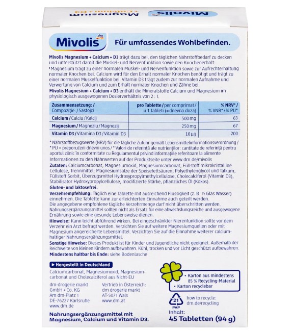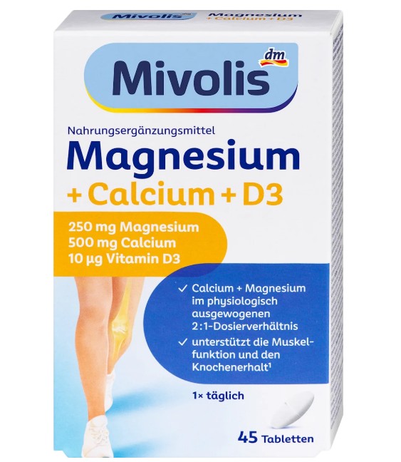 Viên uống Mivolis Magnesium + Calcium + D3, 45 viên