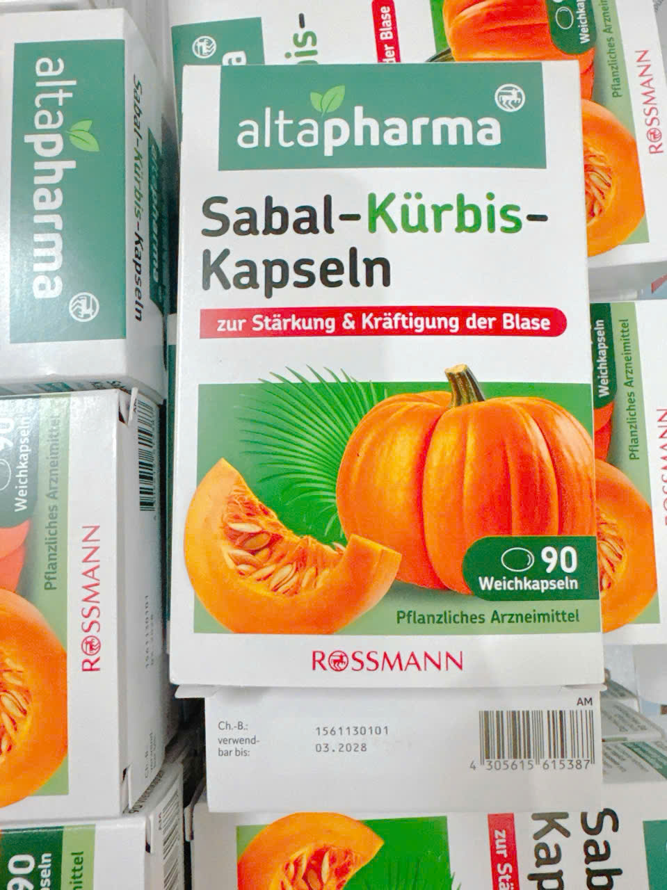 Altapharma Sabal-Kurbis-Kapseln còn được gọi là viên nang bí ngô, viên uống trị tiểu đêm.